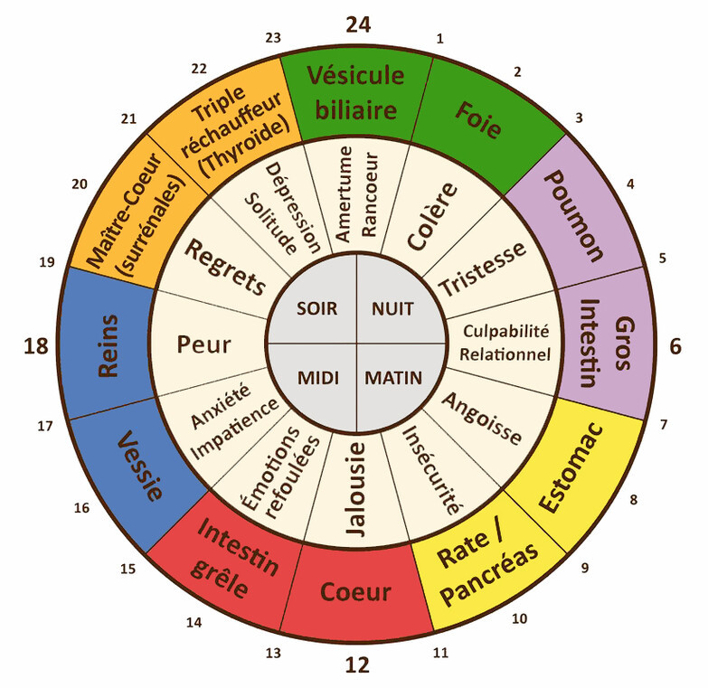 Chaque organe est associé à une émotion positive et une émotion négative :