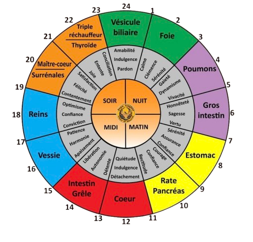 Chaque organe est associé à une émotion positive et une émotion négative :