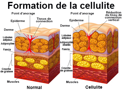 La cellulite, ou “peau d’orange”, concerne 90 % des femmes, quelle que soit leur morphologie. Elle résulte de :